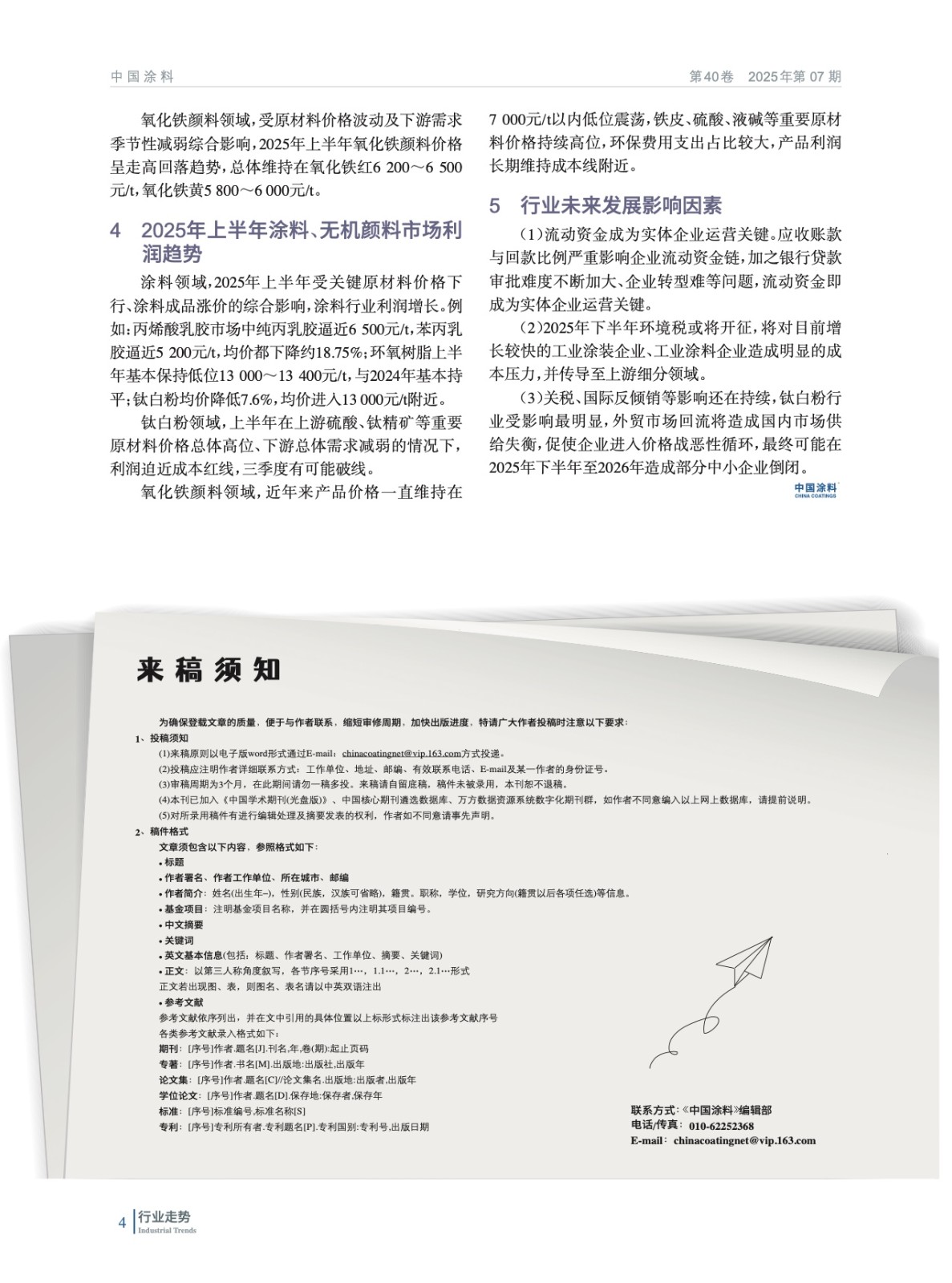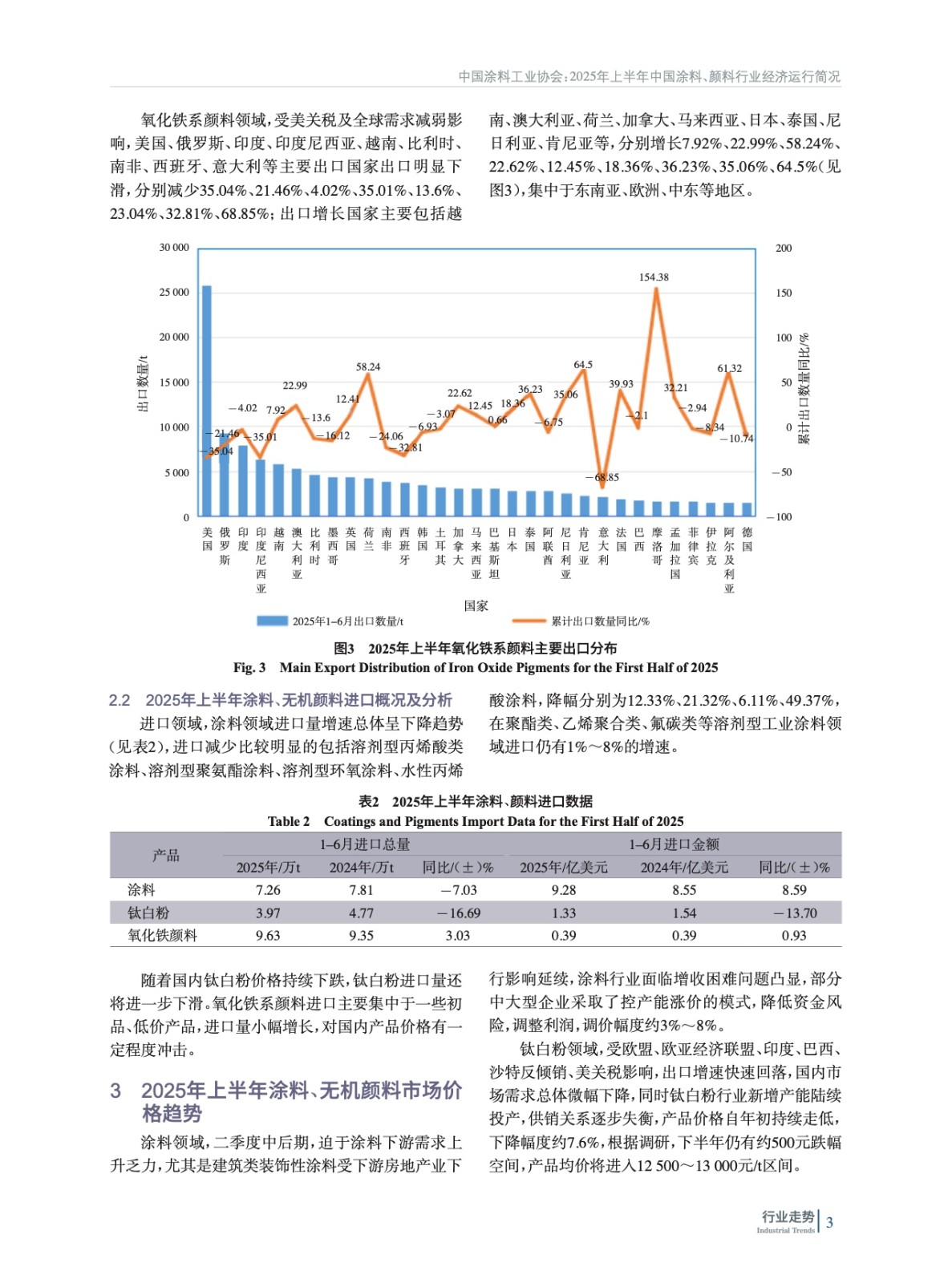 綜述了2025年上半年涂料、無機顏料行業經濟運行簡況和進出口簡況,并對2025年上半年涂料、顏料行業總體發展趨勢進行了分析、對未來形勢進行了預判。