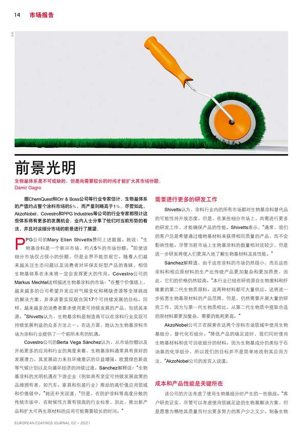 生物基體系是不可或缺的,但是尚需要較長的時間才能擴大其市場份額