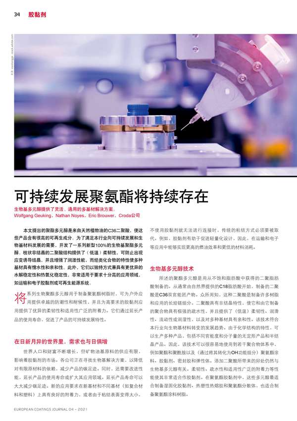 生物基多元醇提供了靈活、 通用的多基材解決方案