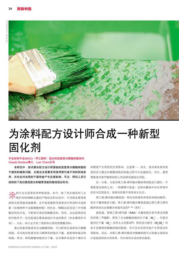 為涂料配方設計師合成一種新型固化劑