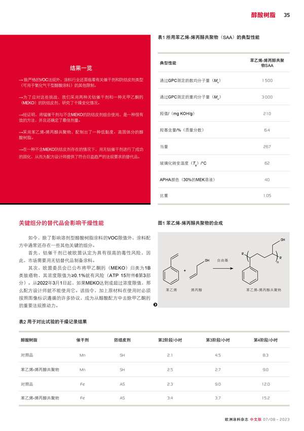 不含鈷和不含MEKO(甲乙酮肟)組分的高固體分醇酸樹脂涂料