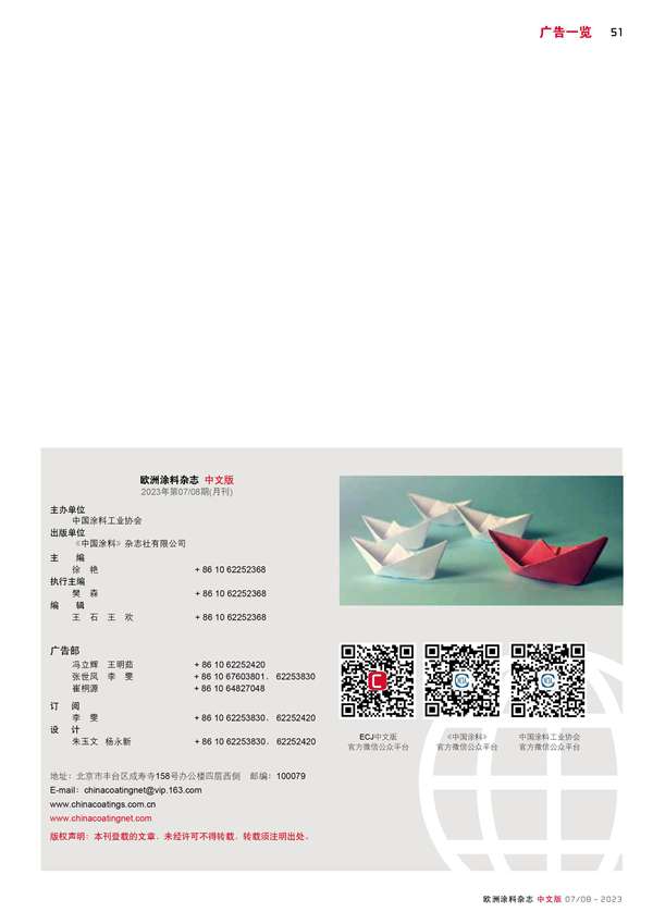主辦:《中國涂料》雜志社有限公司 電話:010-62252368