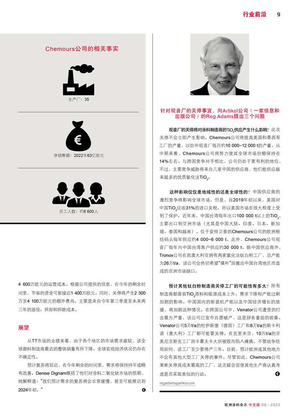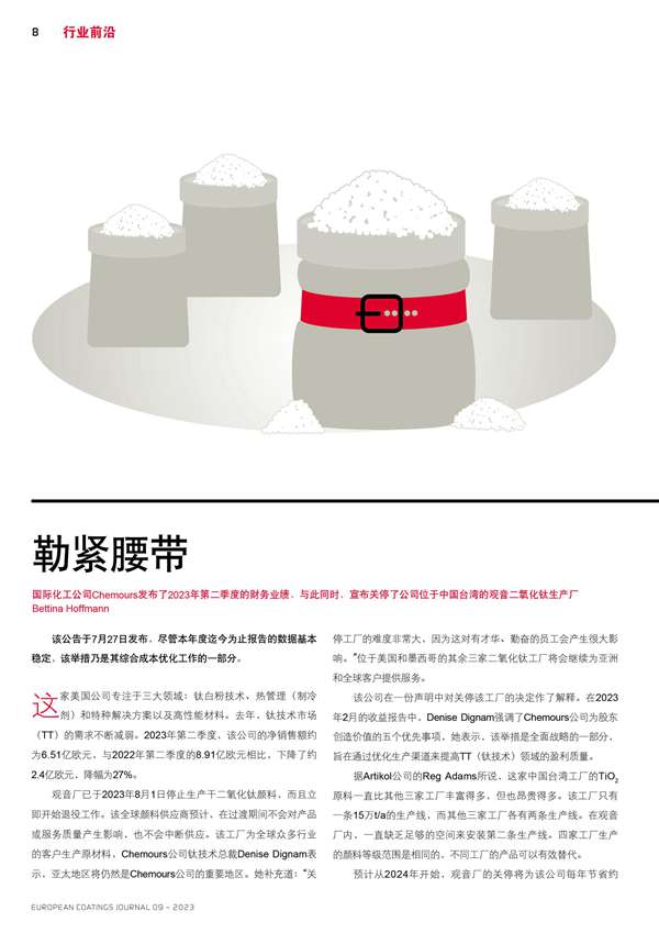 Chemours公司宣布關停了公司位于中國臺灣的觀音二氧化鈦生產廠