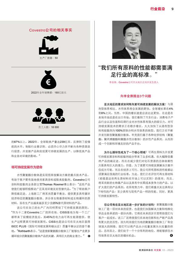Covestro公司進一步擴大其在中國的聚氨酯分散體產能