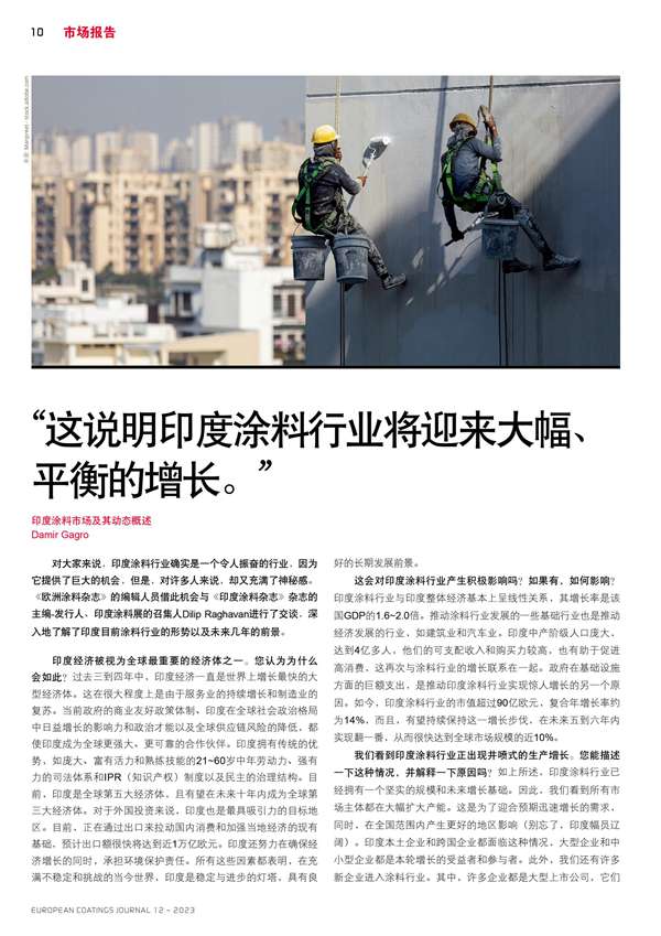 這說明印度涂料行業將迎來大幅、平衡的增長。