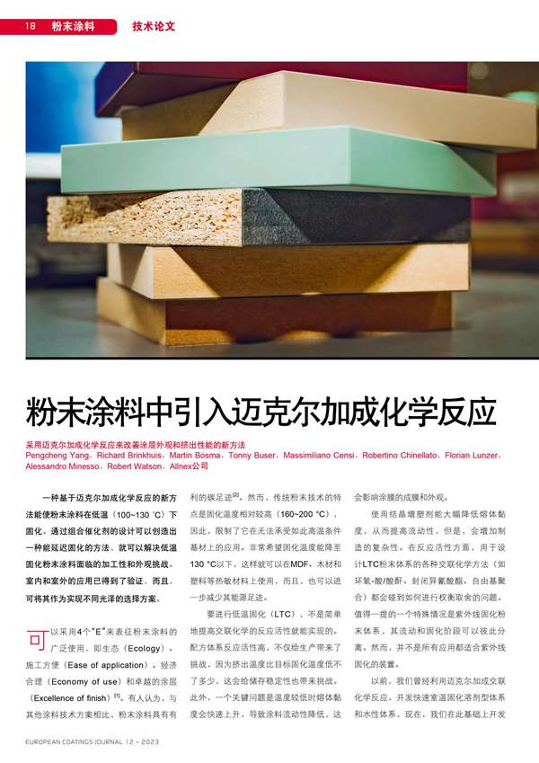 粉末涂料中引入邁克爾加成化學反應