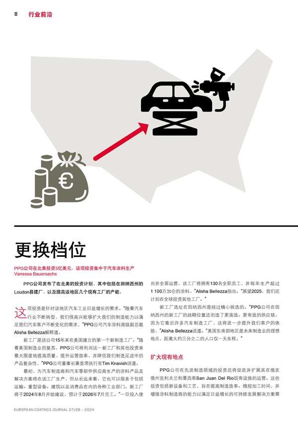 PPG公司在北美投資3億美元