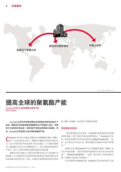 Covestro公司擴(kuò)大全球聚氨酯分散體產(chǎn)能