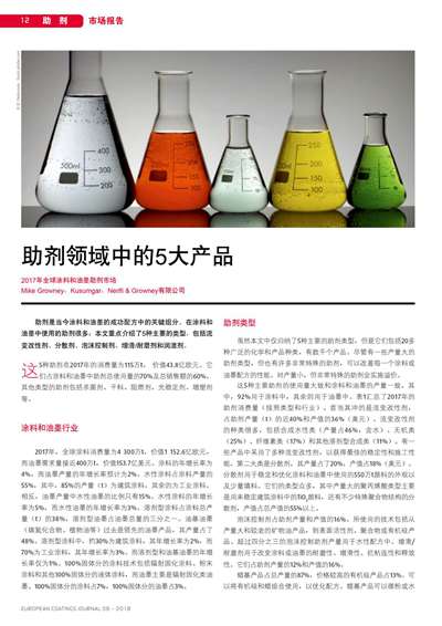 2017年全球涂料和油墨助劑市場
