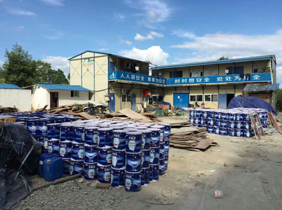 圖:華隆涂料施工人員在現(xiàn)場施工