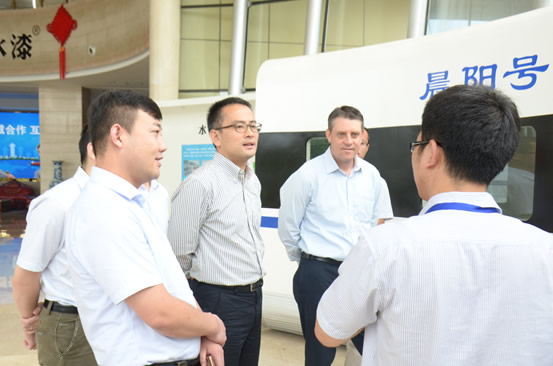 亨斯邁亞太區(qū)商務(wù)總監(jiān)Shane Woodward對晨陽水漆的現(xiàn)場管理、技術(shù)實力及公司對水性涂料方面的貢獻表示肯定,并不時詢問相關(guān)情況,對共建聯(lián)合實驗室的方案表示認可。期間,雙方還就工程機械水性化涂裝、大型車輛水性化涂裝、石油管道防腐水性化涂裝等進行交流討論,并達成初步合作意向。