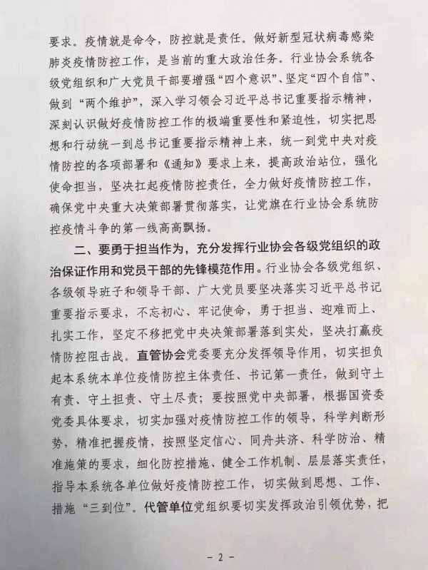 關于行業協會加強黨的領導 為打贏疫情防控阻擊戰提供堅強政治保證的通知