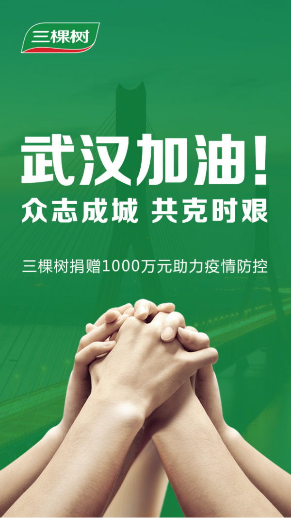天災無情人有情,三棵樹將時刻關(guān)注疫情情況,積極承擔企業(yè)社會責任和弘揚大愛精神,還將通過匯聚企業(yè)、合作伙伴、員工等各方力量共同抗擊疫情,為在前線抗擊疫情的廣大醫(yī)務工作者提供更多力所能及的幫助。