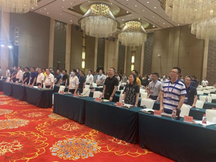 大會(huì)在莊嚴(yán)的國(guó)歌聲中正式拉開序幕,全體與會(huì)人員起立,奏唱國(guó)歌。