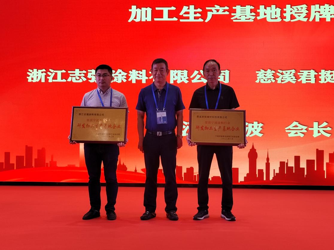 在寧波涂料行業(yè)研發(fā)加工生產(chǎn)基地授牌儀式上,汪立波會(huì)長(zhǎng)為2022年度新增寧波涂料行業(yè)研發(fā)加工生產(chǎn)基地企業(yè)授牌。