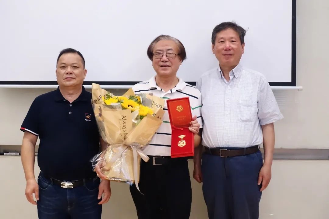 會上,史文軍代表市工經聯黨委書記管維鏞,向一同參加調研的涂料染料行業協會秘書長張水鶴頒發了在黨50年紀念章。