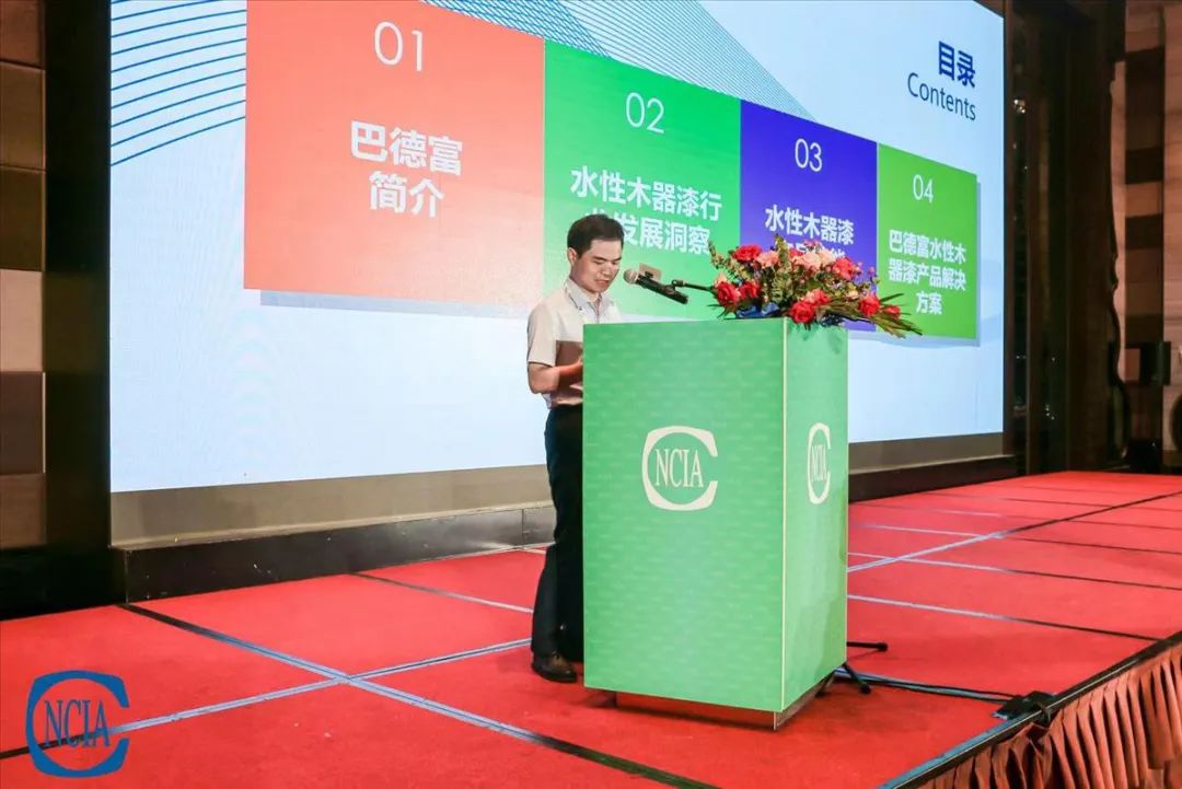 作為水性木器涂料乳液解決方案提供商,巴德富集團水性工業事業部受中國涂料工業協會邀請,由談新勇工程師向與會嘉賓做了《水性木器漆市場發展趨勢和需求探索》專題分享。他分析隨著近年國家環保政策、水性化木器漆技術、工藝和涂裝設備的發展、生物基新材等影響,木器涂料行業出現良好的增長態勢,對乳液產品提出了高環保、高施工寬容性、高性價比、高耐性的性能要求。談工針對木器涂料施工過程中出現的痛點,重點分享了幾款高透高豐滿度、高性能、高性價比的解決方案,并詳細闡述其技術邏輯和在市場應用中的效果表現。