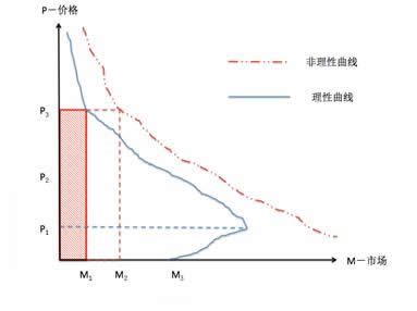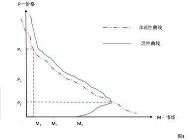 其次,根據圖2顯示:如果產品價格定在P3,那么銷售能夠達到的理想銷量是陰影的部分如果,輔以一定的市場營銷,銷量或許可以擴展到虛線所示的面積。但是如果過渡營銷或者營銷不當的話,結果會適得其反(如圖3所示)。這種案例比比皆是,大家可以對號入座。