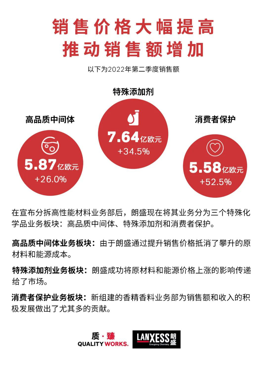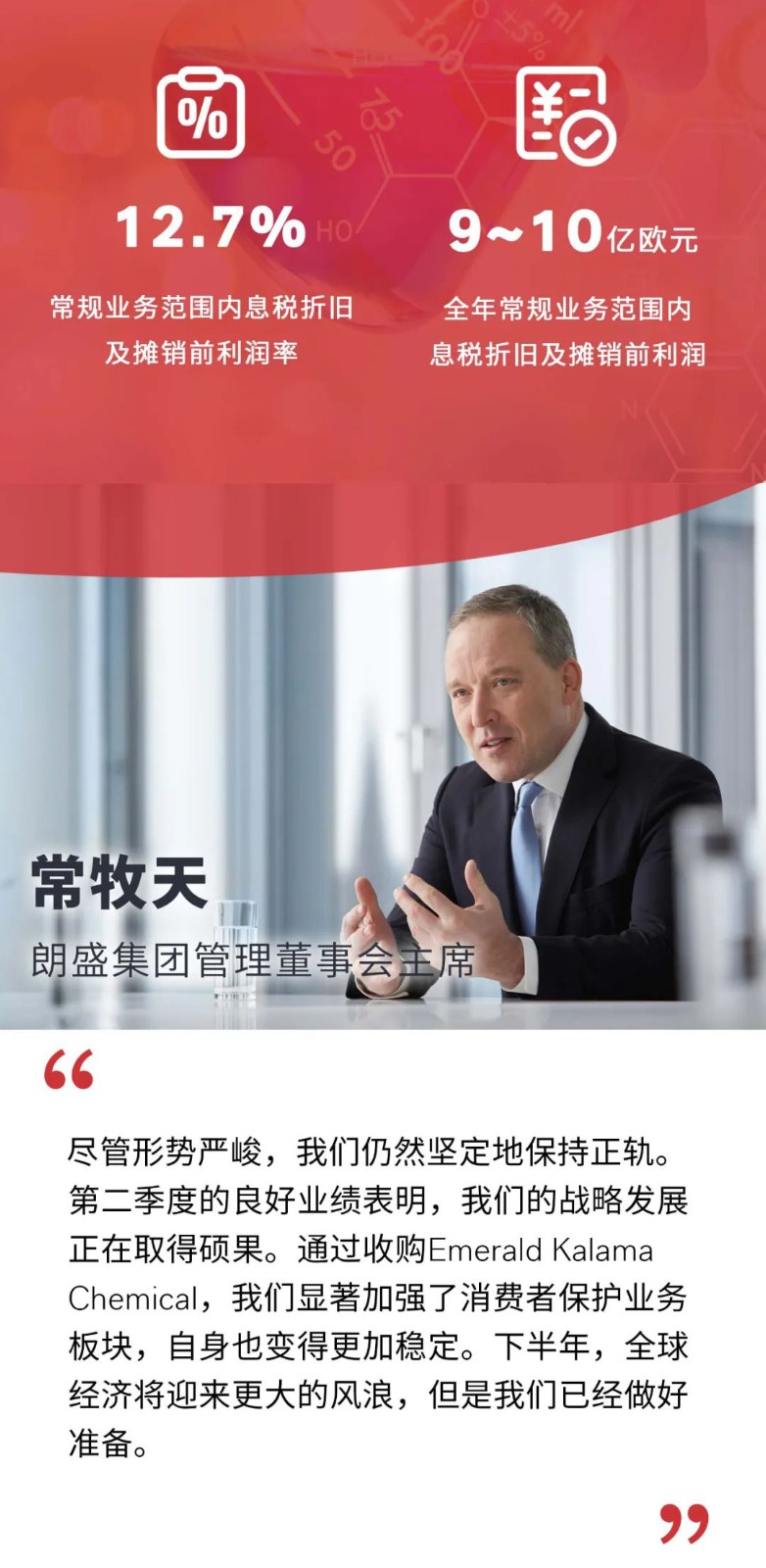 2022年8月9日,朗盛發(fā)布了第二季度財(cái)報(bào)。在原材料和能源成本上漲、物流條件困難的嚴(yán)峻形勢(shì)下,朗盛第二季度收入再度增加,繼續(xù)保持穩(wěn)健發(fā)展。