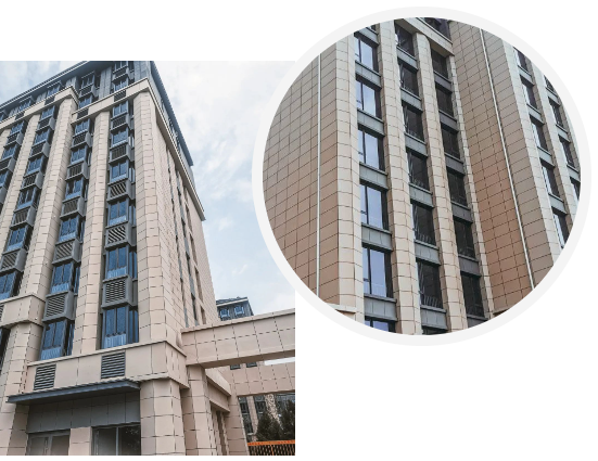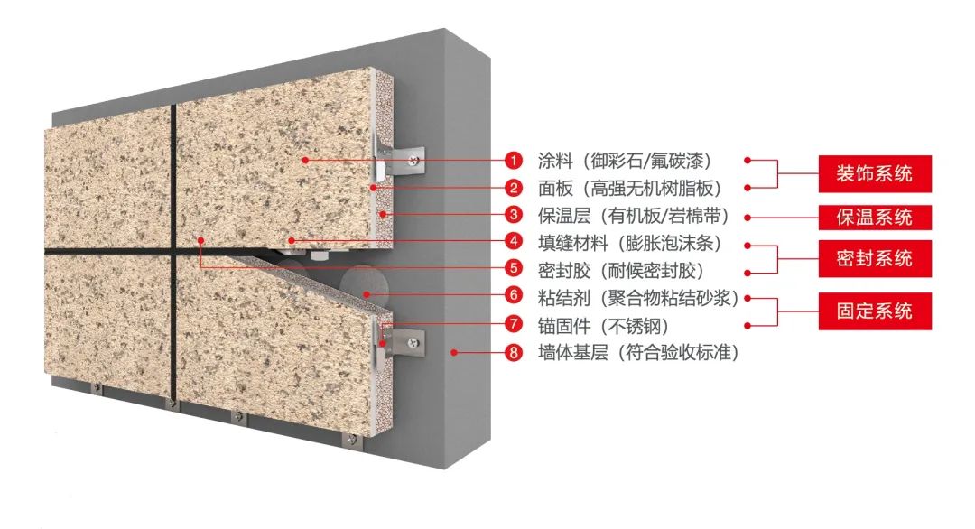 亞士創(chuàng)能保溫裝飾成品板自重輕,每平方米單位質(zhì)量不超過30 kg,而30 mm厚的石材每平方米質(zhì)量在75-100 kg,只有石材的1/10到2/5,安全性大大提升。