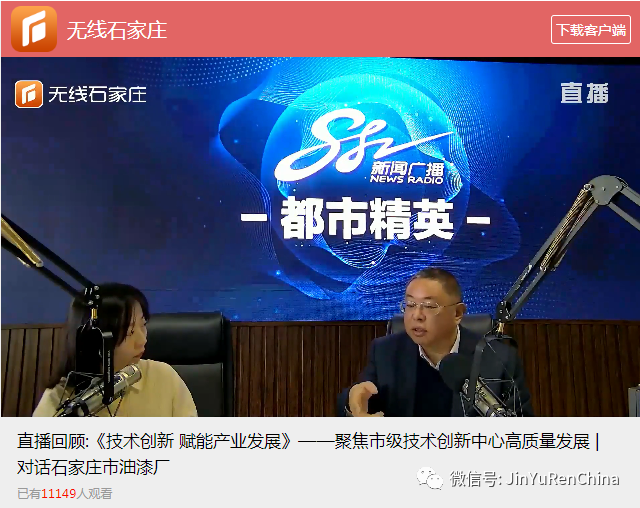 10月11日下午,【石家莊新聞廣播882】科技企業系列專訪《技術創新 賦能產業發展》欄目,特邀石家莊市油漆廠(“金魚漆”)董事長焦亞平先生,走進直播間——對話石家莊市油漆廠,聚焦石家莊市水性工業涂料技術創新中心高質量發展。
