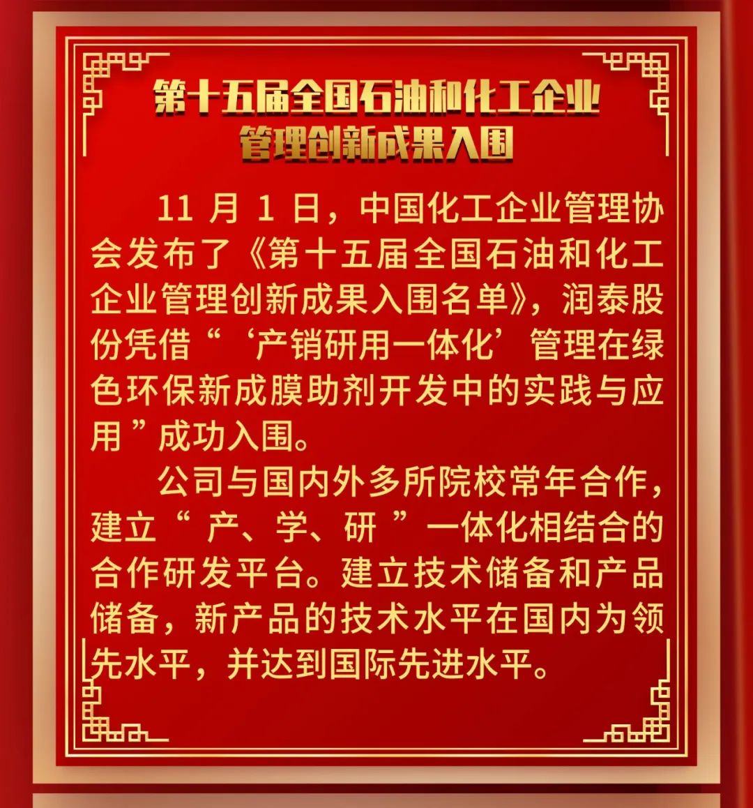喜訊|潤(rùn)泰成膜收官季斬獲多項(xiàng)榮譽(yù)