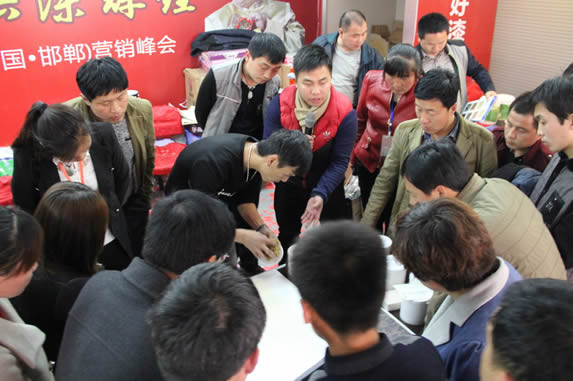 發展規劃和新產品是經銷商最關心的兩個話題,華隆涂料河北省區經理鄧理偉分享《河北省2015營銷規劃》,分析涂料行業的整體行情,并詳細介紹了2015年華隆總公司對河北市場的發展規劃和市場推廣策略。隨后,王德純、錢德洪、鄧理偉、劉敬、鞏鋒強共同完成了河北全省聯動揭牌儀式,并由專業模特走秀,為嘉賓展示2015年最新產品。市場部推廣部長錢德洪詳細介紹了新品及2015立體化營銷新模式。此次峰會展出的新品將在本月18號在浙江正式召開全國新品上市新聞發布會,邯鄲市場的老板有幸能夠先睹為快。
