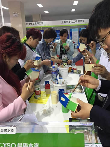 展覽會上,晨陽水漆展臺重點(diǎn)展示了旗下的工業(yè)水漆、內(nèi)外墻水漆、多功能水漆等系列產(chǎn)品。為讓參觀者更好地了解環(huán)保水漆特性和應(yīng)用,公司展位精心設(shè)計(jì)了海報(bào)、宣傳單頁;同時(shí),還開辟了試刷體驗(yàn)區(qū),親身體驗(yàn)晨陽水漆的環(huán)保特性,吸引了眾多觀眾駐足。