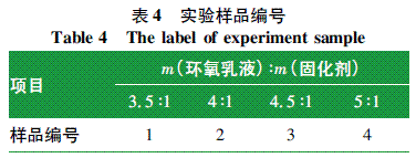環(huán)氧乳液與固化劑的比例和樣品編號(hào)的對(duì)應(yīng)關(guān)系如表4所示。