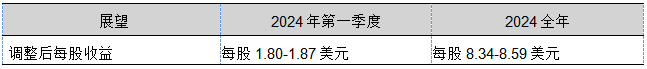 基于當前的全球經濟活動、疲軟的工業生產、歐洲的需求穩定、墨西哥的持續增長和中國的需求改善,公司對2024年第一季度及全年做出如下預測:
