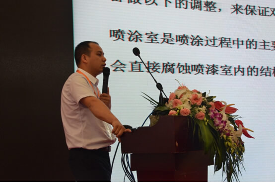 來自廣東科霖環(huán)保設(shè)備有限公司的曾廣采經(jīng)理做了《低VOC環(huán)境下涂裝一體化的解決方案》報告。曾經(jīng)理就國家的環(huán)保要求拓展開,闡述了新近推行的《木制家具制造業(yè)大氣污染物排放標準》的概況,特別指出《標準》連對廠區(qū)邊界、車間工位等無組織VOC地區(qū)都限定了排放標準,未來的生產(chǎn)環(huán)境將尤為嚴格。曾經(jīng)理還就水性木器涂料的自然干燥問題做了分析總結(jié),推薦了具有干燥快速、能耗較低、效率較高三大優(yōu)點的微波干燥技術(shù)。