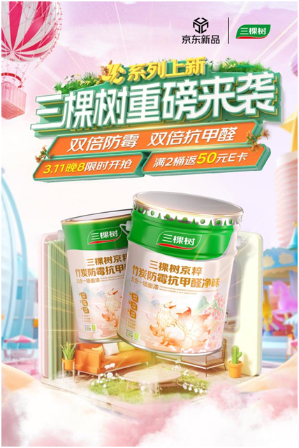 3月11日晚8點(diǎn),國(guó)內(nèi)涂料領(lǐng)軍企業(yè)三棵樹(shù)與京東聯(lián)合發(fā)布,JC系列新品JC竹炭防霉抗甲醛低氣味五合一墻面漆正式登陸京東平臺(tái)全球首發(fā)。此次新品上市更聯(lián)合京東發(fā)起"買(mǎi)漆種樹(shù)"公益計(jì)劃,通過(guò)"產(chǎn)品+公益"雙軌并行的創(chuàng)新模式,踐行企業(yè)綠色使命。