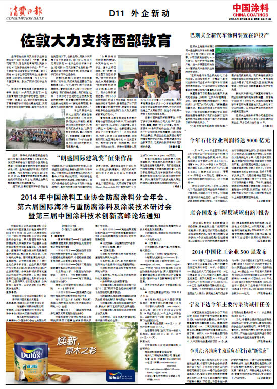 《中國涂料報》(電子版)的一切內容(包括但不限于文字、圖片、PDF、圖表、標志、標識、商標、版面設計、專欄目錄與名稱、內容分類標準以及為讀者提供的任何信息)僅供中國涂料信息網讀者閱讀、學習研究使用,未經中國涂料雜志社有限公司及/或相關權利人書面授權,任何單位及個人不得將《中國涂料報》(電子版)所登載、發布的內容用于商業性目的,包括但不限于轉載、復制、發行、制作光盤、數據庫、觸摸展示等行為方式,或將之在非本站所屬的服務器上作鏡像。否則,中國涂料雜志社有限公司將采取包括但不限于網上公示、向有關部門舉報、訴訟等一切合法手段,追究侵權者的法律責任。