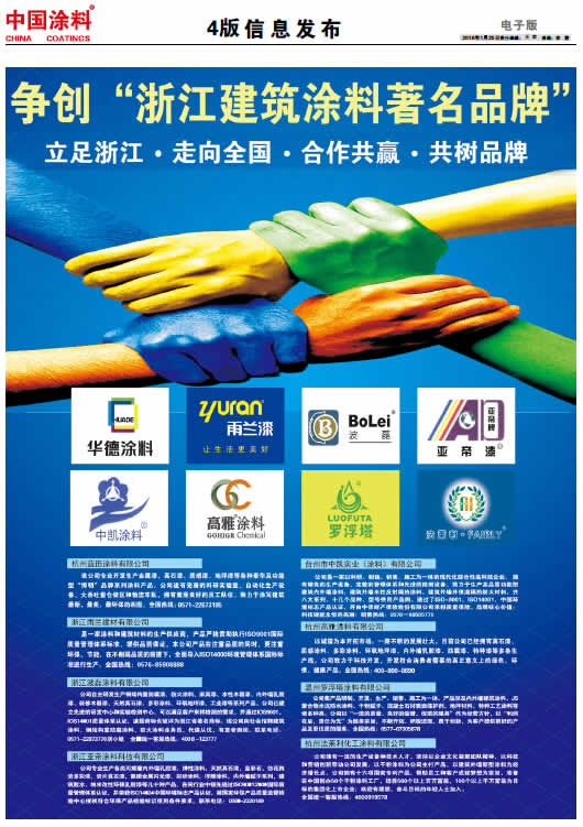 《中國(guó)涂料報(bào)》(電子版)的一切內(nèi)容(包括但不限于文字、圖片、PDF、圖表、標(biāo)志、標(biāo)識(shí)、商標(biāo)、版面設(shè)計(jì)、專欄目錄與名稱、內(nèi)容分類標(biāo)準(zhǔn)以及為讀者提供的任何信息)僅供中國(guó)涂料信息網(wǎng)讀者閱讀、學(xué)習(xí)研究使用,未經(jīng)中國(guó)涂料雜志社有限公司及/或相關(guān)權(quán)利人書(shū)面授權(quán),任何單位及個(gè)人不得將《中國(guó)涂料報(bào)》(電子版)所登載、發(fā)布的內(nèi)容用于商業(yè)性目的,包括但不限于轉(zhuǎn)載、復(fù)制、發(fā)行、制作光盤(pán)、數(shù)據(jù)庫(kù)、觸摸展示等行為方式,或?qū)⒅诜潜菊舅鶎俚姆⻊?wù)器上作鏡像。否則,中國(guó)涂料雜志社有限公司將采取包括但不限于網(wǎng)上公示、向有關(guān)部門(mén)舉報(bào)、訴訟等一切合法手段,追究侵權(quán)者的法律責(zé)任。