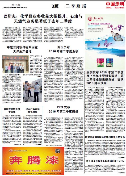 PPG發(fā)布2016 年第二季度財(cái)報(bào)