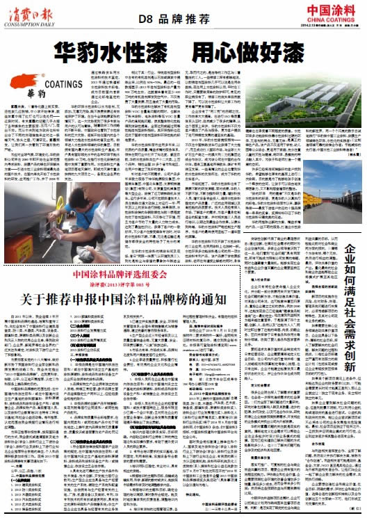 《中國涂料報》(電子版)的一切內容(包括但不限于文字、圖片、PDF、圖表、標志、標識、商標、版面設計、專欄目錄與名稱、內容分類標準以及為讀者提供的任何信息)僅供中國涂料信息網讀者閱讀、學習研究使用,未經中國涂料雜志社有限公司及/或相關權利人書面授權,任何單位及個人不得將《中國涂料報》(電子版)所登載、發布的內容用于商業性目的,包括但不限于轉載、復制、發行、制作光盤、數據庫、觸摸展示等行為方式,或將之在非本站所屬的服務器上作鏡像。否則,中國涂料雜志社有限公司將采取包括但不限于網上公示、向有關部門舉報、訴訟等一切合法手段,追究侵權者的法律責任。