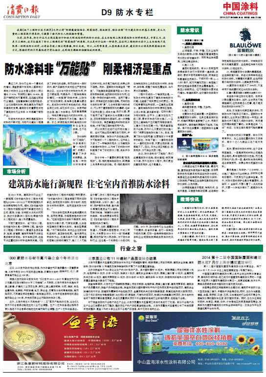中國(guó)涂料報(bào) 2014年2月27日 星期四